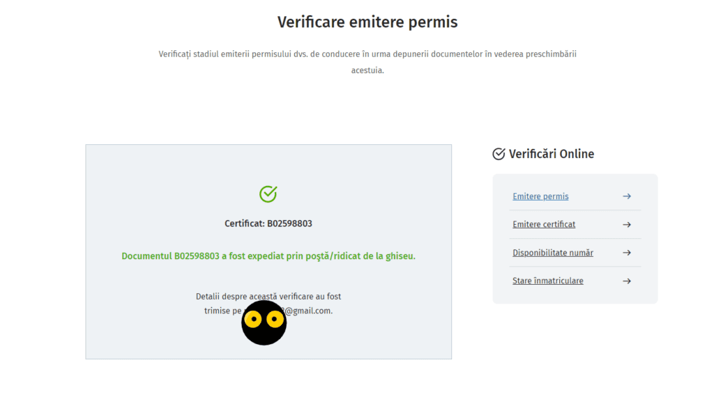 De asemenea, vă veți putea verifica permisul de conducere românesc prin intermediul site-ului DIRECȚIA GENERALĂ PERMISE DE CONDUCERE ȘI ÎNMATRICULĂRI.